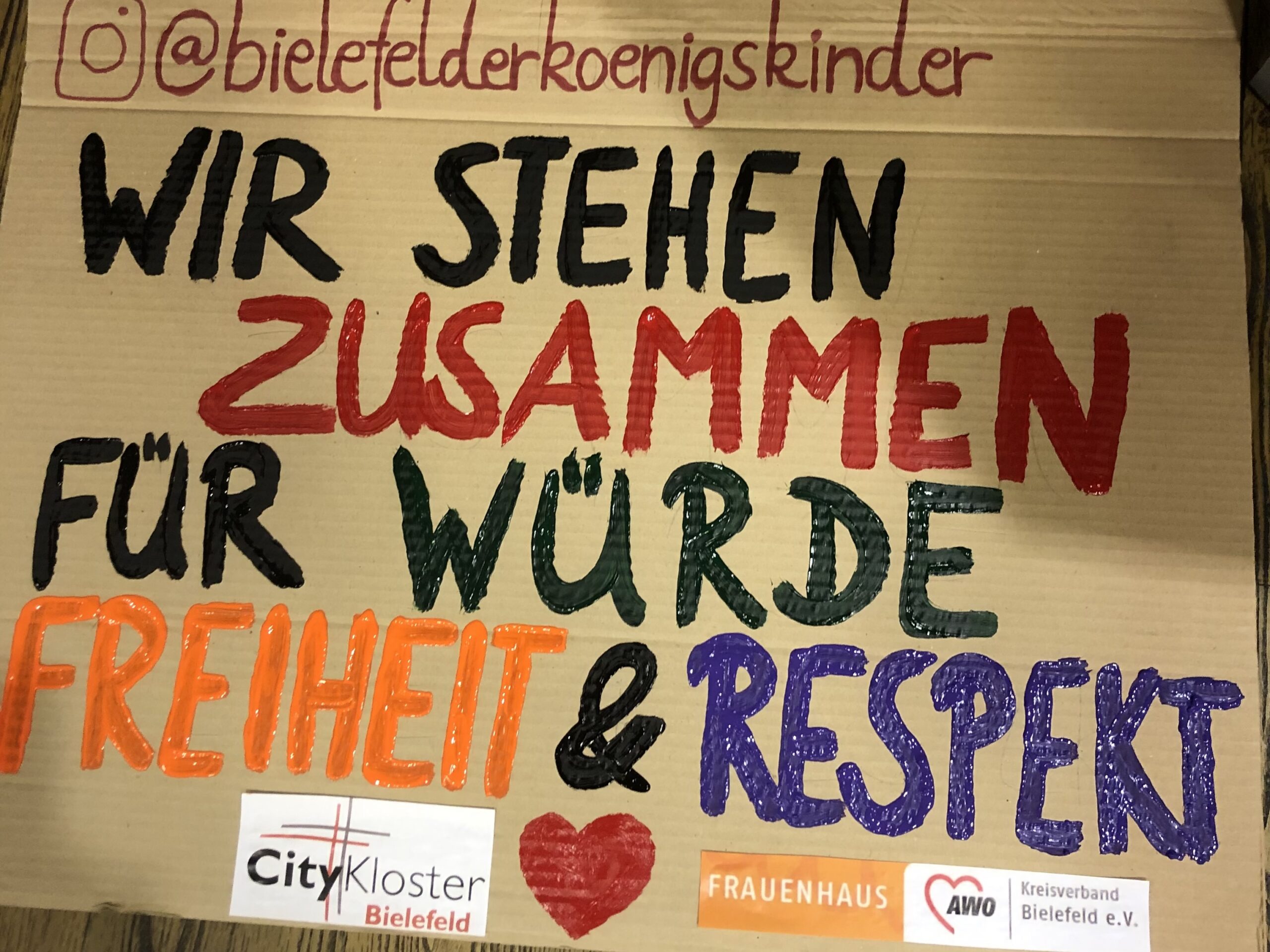 Das ist Überzeugung und Botschaft der Bielefelder Königskinder! Als Botschafter*in der Menschenwürde steht eine Königinfigur im Frauenhaus des AWO-Kreisverbandes Bielefeld und ein König in unserem Klosterladen. Und sie sind gemeinsam unterwegs in der Stadt - in Schulen, bei Festen, auf Demos...