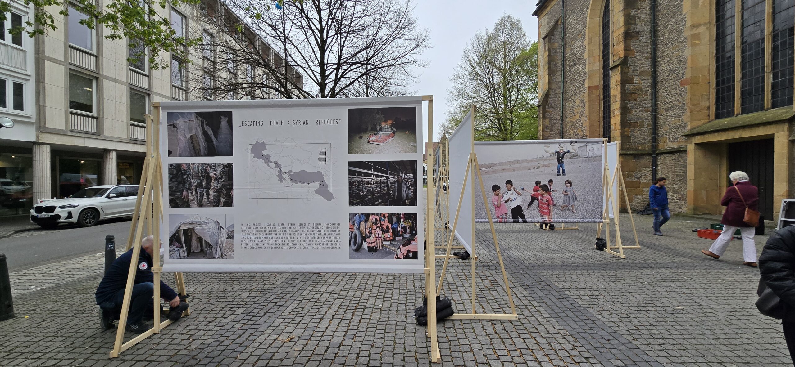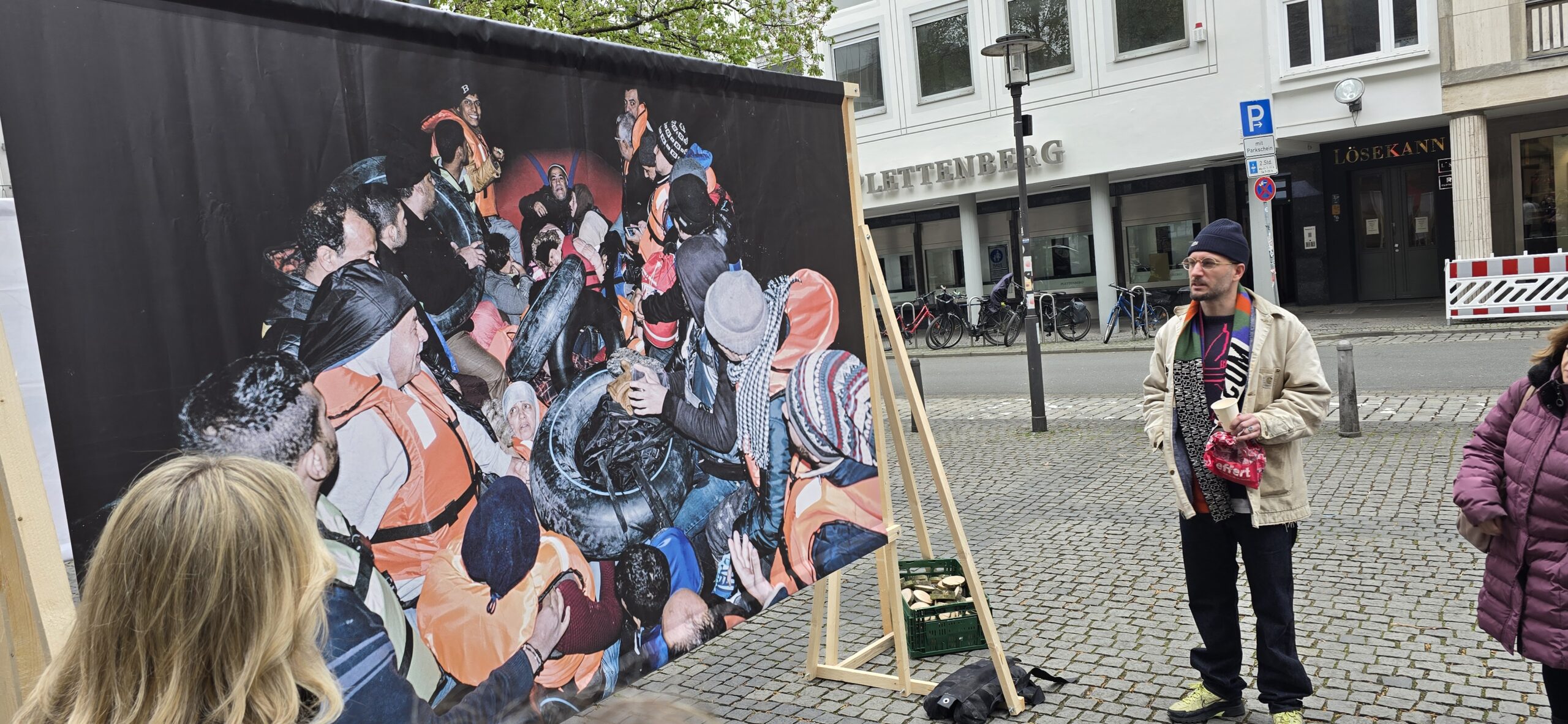 Wir konnten seine großformatigen Fotografien eine Woche lang auf dem Altstädter Kirchplatz zeigen. Felix Kleymann ist 2015 der Route aus Syrien flüchtender Menschen gefolgt. Vom Irak aus ging es über die Türkei nach Griechenland und dann über die Balkanroute bis nach Deutschland. Er hat sich viel Zeit für Begegnungen mit den Menschen genommen. Soweit das möglich war hat er ihre Erfahrungen geteilt. Daher zeigen seine Fotos, eindrücklich die Realität von Flucht – zwischen Angst, Hoffnung und Menschlichkeit.
