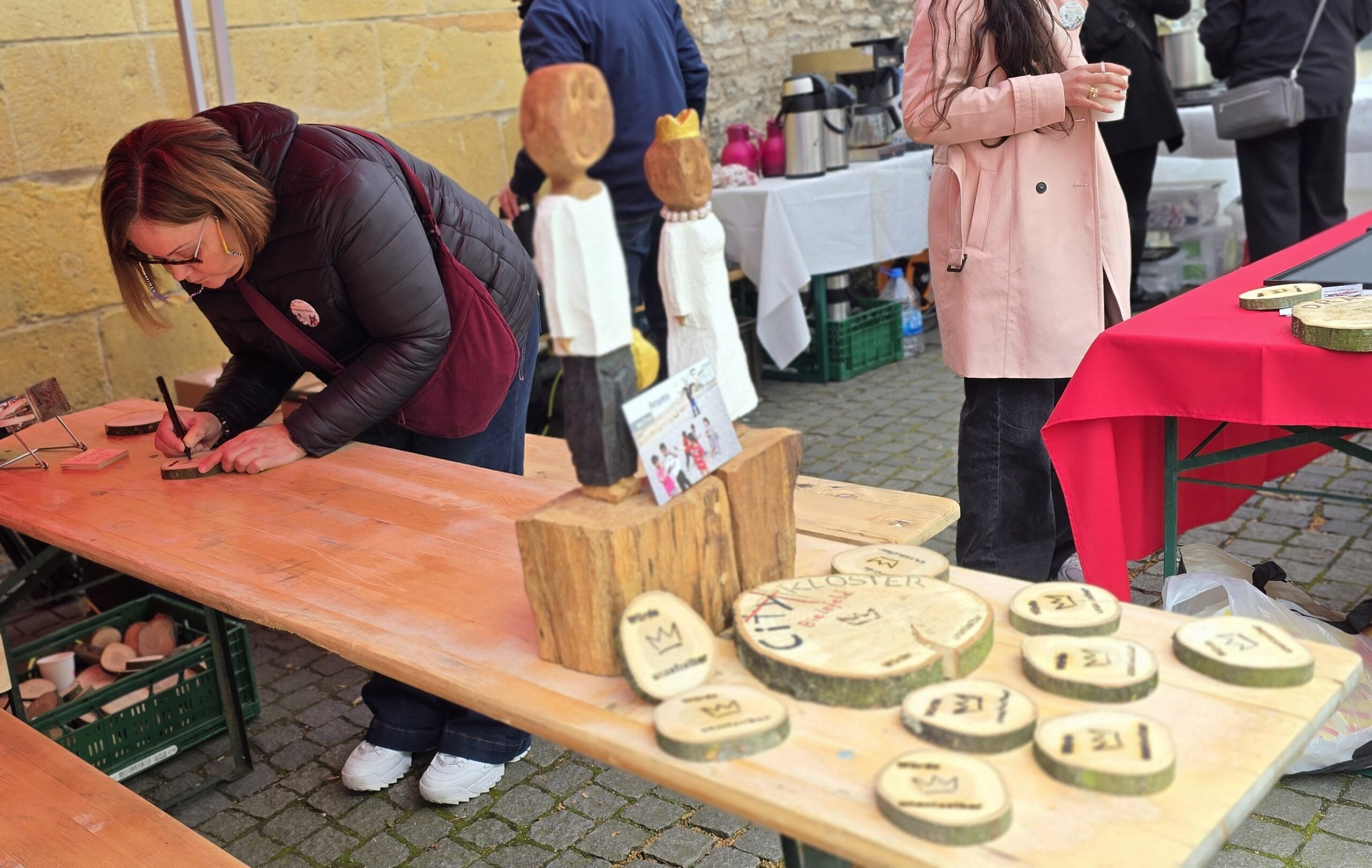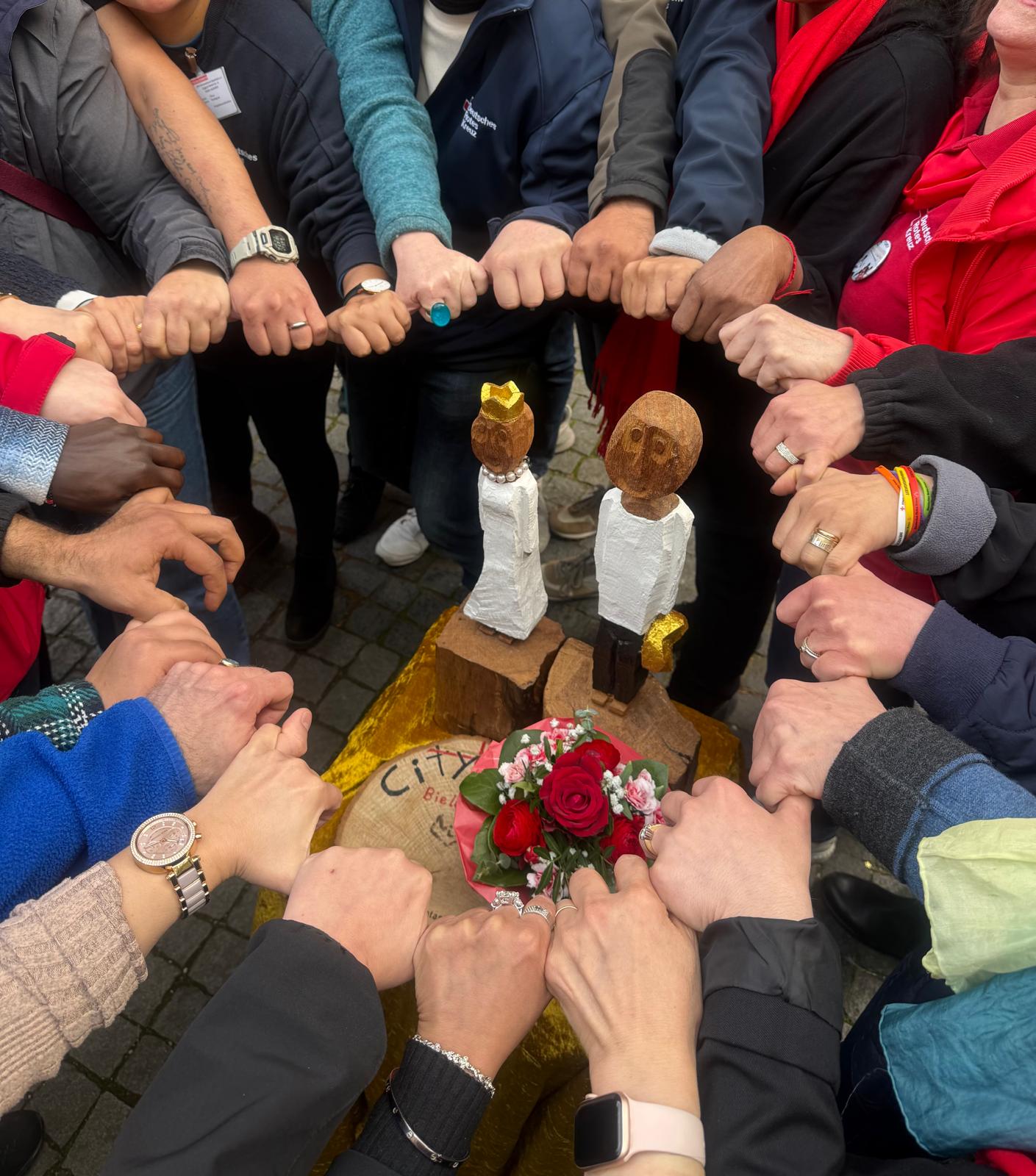Die „Bielefelder Königskinder“ waren in der Woche dabei. Wir haben vor Ort Würdetafeln gebrannt und verziert. Auf diese Weise konnten wir das Thema der Menschenwürde gut zur Sprache bringen.
