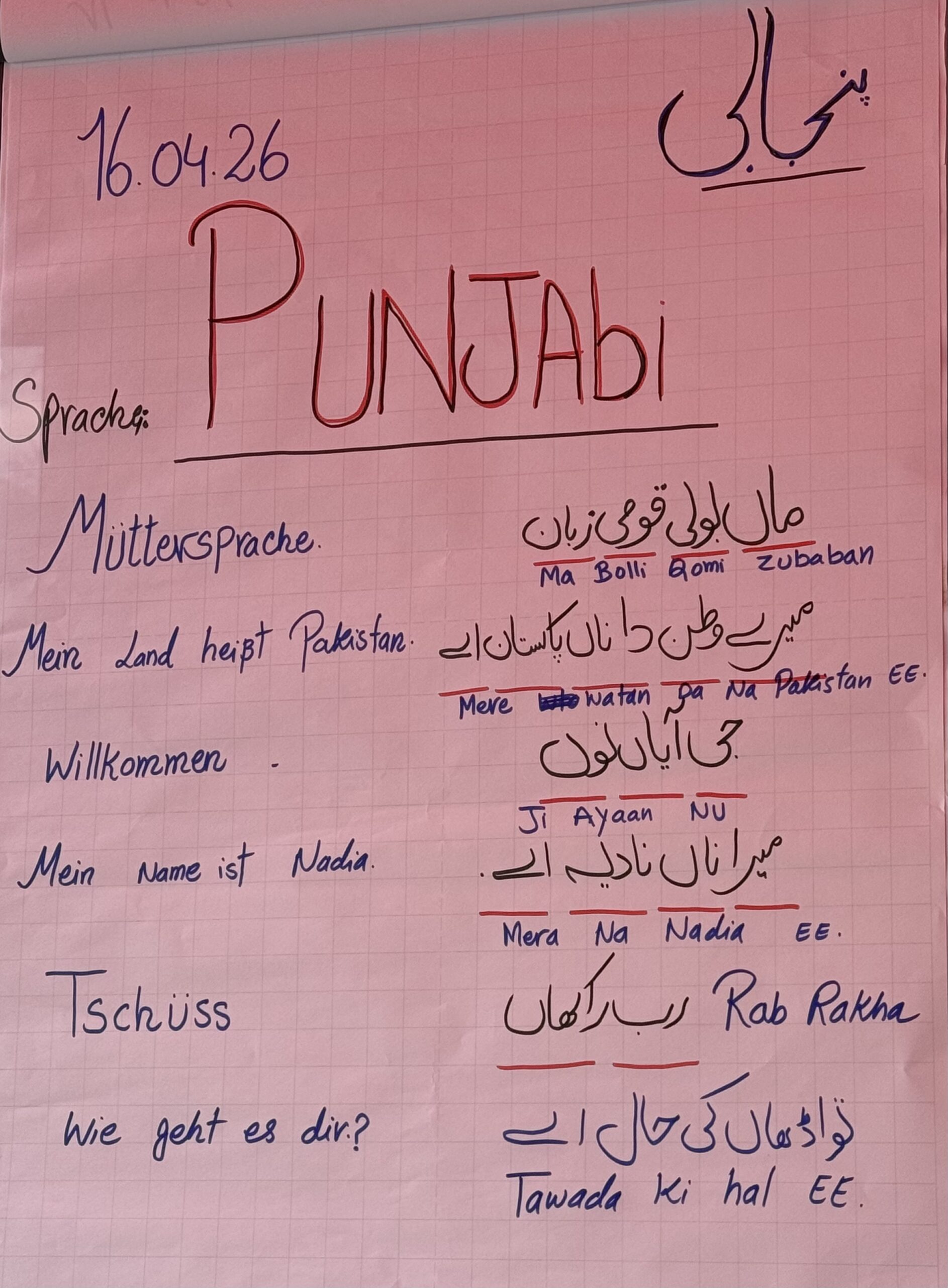 Mehrmals täglich gab es „Sprachunterricht“: Arabisch, Ukrainisch, Russisch, Kurdisch, Türkisch, Urdu und Punjabi standen auf dem Programm. Dieser „Unterricht“ half, sich tiefer in die Situation von Menschen auf der Flucht einzufühlen.